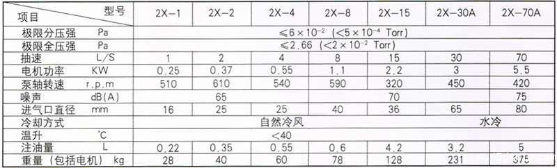 (4)2X型旋片式真空泵型号表示方法:列2X—4,2代表双级泵,X代表旋片式真空泵,一横线后面的数字4代表每秒钟的抽速。